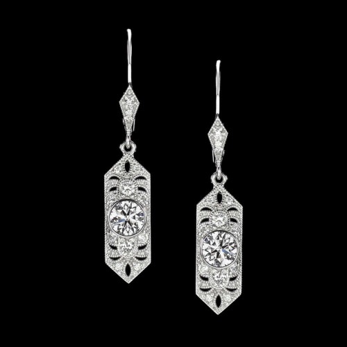 0.78ct NATURAL DIAMOND VINTAGE STYLE DROP EARRINGS ART DECO GEOMETRIC CLASSIC