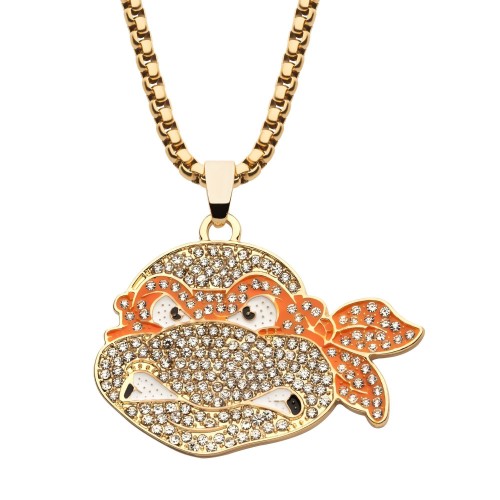 Base Metal Gold Plated Teenage Mutant Ninja Turtles Michael Angelo Bling Pendant Necklace