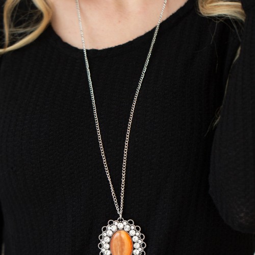 Paparazzi Accessories Oh My Medallion – Orange Cat`s Eye Necklace