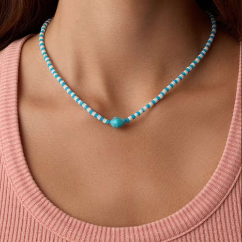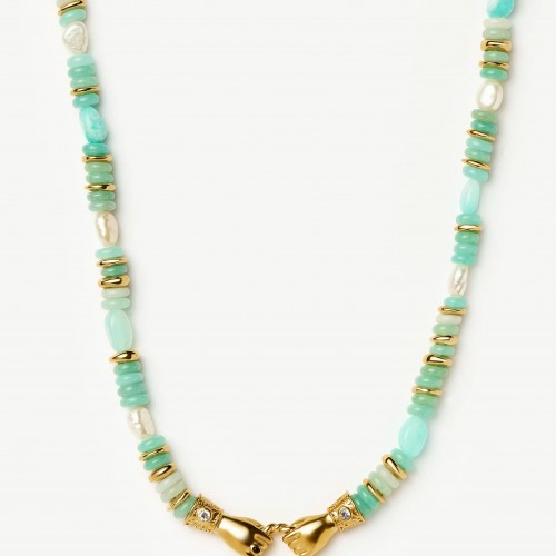 Harris Reed In Good Hands Chunky Beaded Gemstone Necklace | 18k Gold Plated/Multi Amazonite & Pearl