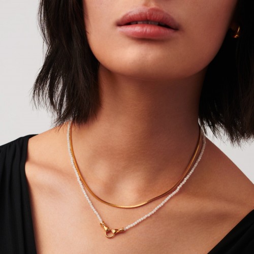 Harris Reed In Good Hands Mini Beaded Gemstone Necklace | 18k Gold Plated/Rainbow Moonstone