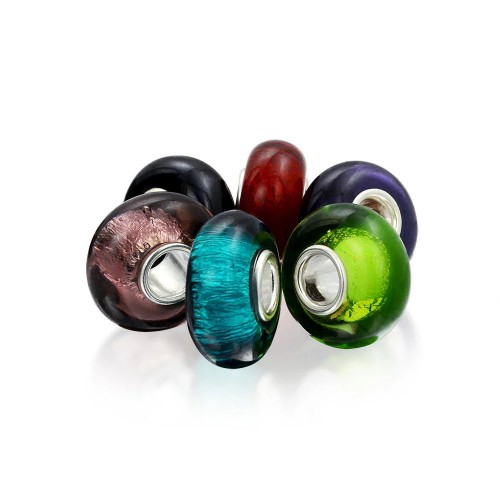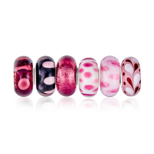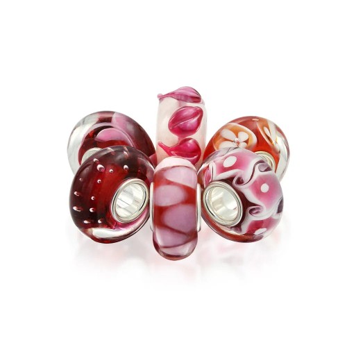 Mixed Set Shades of Red and Pink Murano Glass Charm Bead for European Bracelets Sterling Silver Core