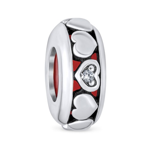 Valentine CZ Accent Pink Red Enamel Flower Heart Charm Bead Sterling Silver Fits European Bracelet