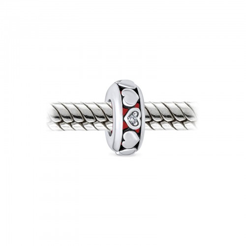 Valentine CZ Accent Pink Red Enamel Flower Heart Charm Bead Sterling Silver Fits European Bracelet