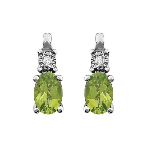 Natural Peridot & Natural Diamond Stud Earrings 14k White Gold
