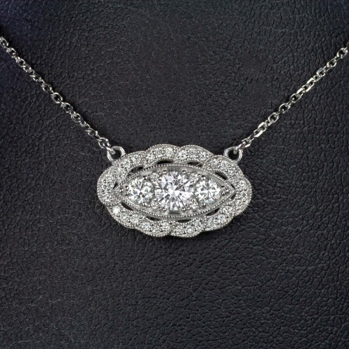 0.64ct VINTAGE STYLE DIAMOND PENDANT NECKLACE 14k WHITE GOLD EDWARDIAN STYLE