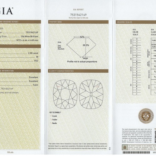 2 CARAT OLD MINE CUT DIAMOND GIA CERTIFIED M VS2 ANTIQUE STYLE ELONGATED CUSHION