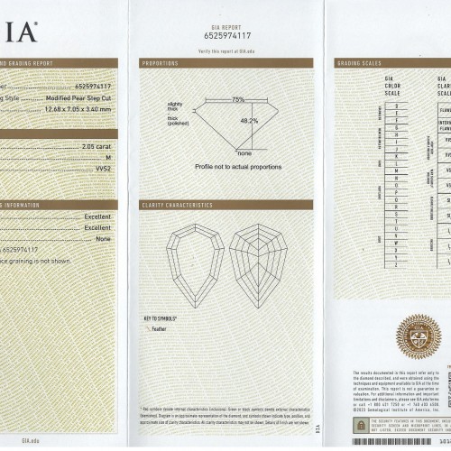 2.05ct GIA CERTIFIED DIAMOND M VVS2 STEP CUT PEAR SHAPE GEOMETRIC LOOSE 2 CARAT