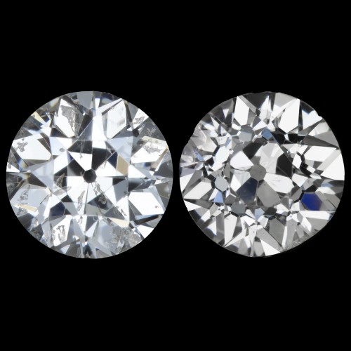 2.42c OLD EUROPEAN CUT DIAMOND STUD EARRINGS F-H SI VINTAGE MATCHING PAIR ESTATE