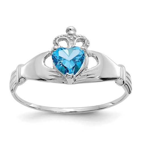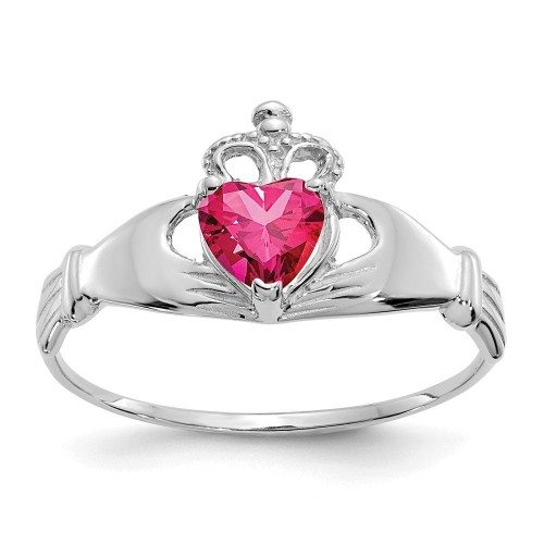 Shop Stylish 14K White Gold Claddagh Ring with July CZ Birthstone – Value! 5