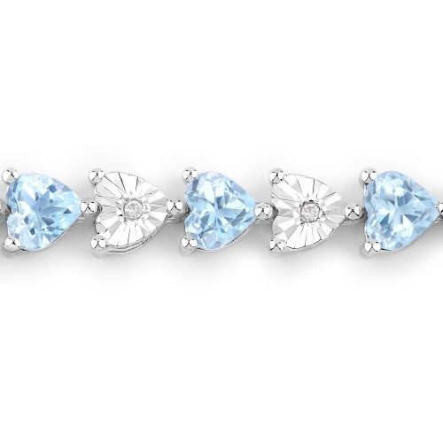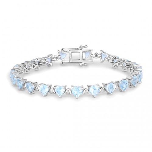 Genuine Blue Topaz and White Diamond Silver Heart Bracelet