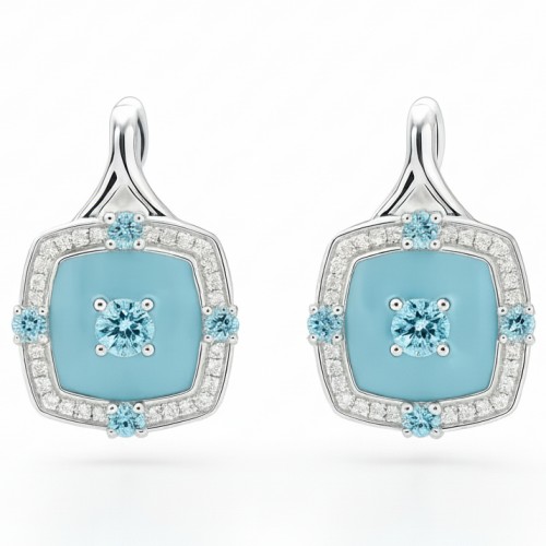 Natural Blue Topaz Sterling Silver Halo Earrings