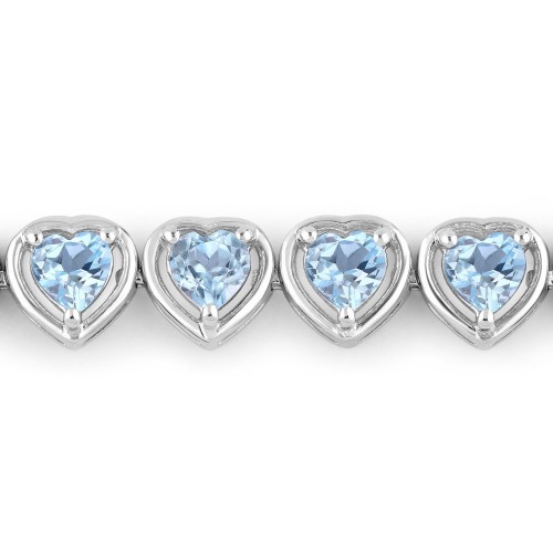 Natural Blue Topaz Tennis Heart-Shaped Bracelet Silver