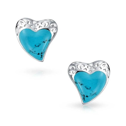 Romantic Statement Large Filigree Natural Turquoise Heart Shape Pendant Necklace Sterling Silver