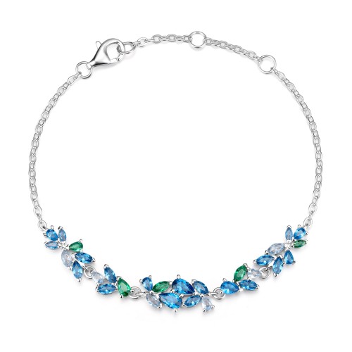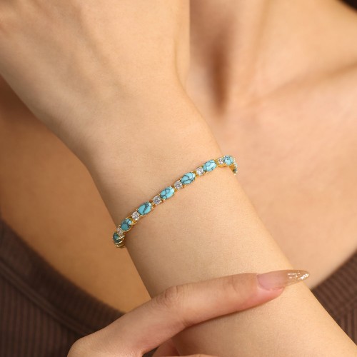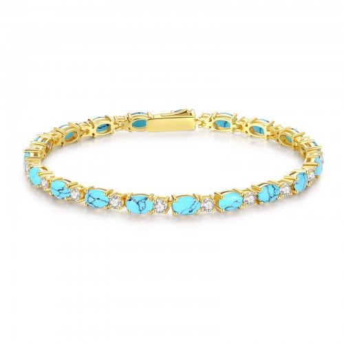“Glamour Radiance” Fancy Cut Tennis Blue Turquoise Stone Sterling Silver Bracelet