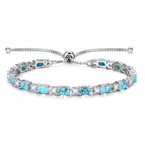 “Glamour Radiance” December Birthstone Turquoise Sterling Silver Tennis Bracelet Classic Bolo Chain