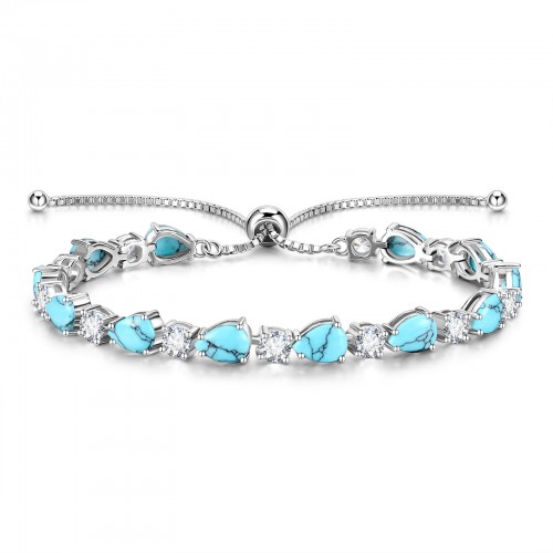 “Glamour Teardrop” December Birthstone Turquoise Sterling Silver Tennis Bracelet Classic Bolo Chain