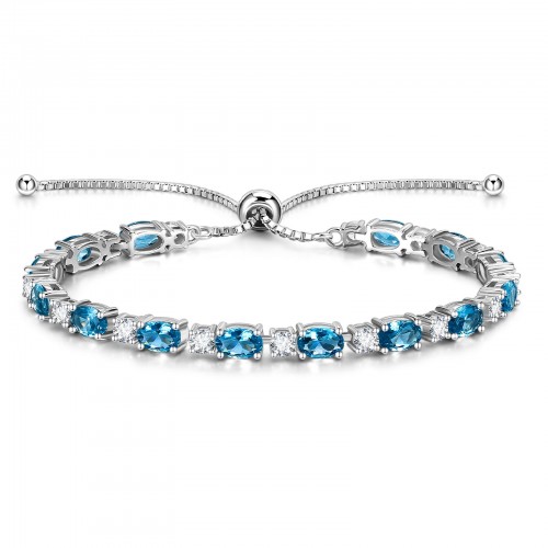 “Glamour Teardrop” December Birthstone Topaz Sterling Silver Tennis Bracelet Classic Bolo Chain