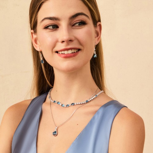 “Glamour Radiance” December Birthstone Fancy Cut Blue Topaz Sterling Silver Tennis Necklace