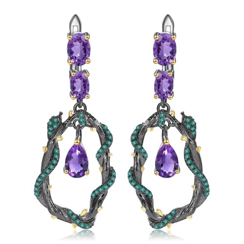 Amethyst Dangling Snake Earrings
