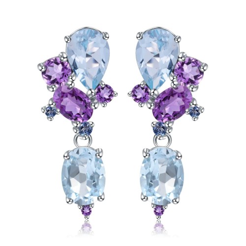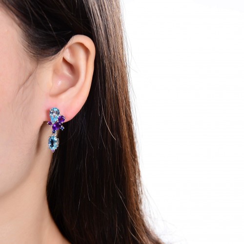 Blue Topaz and Amethyst Statement Earrings