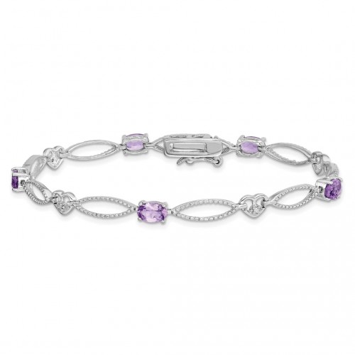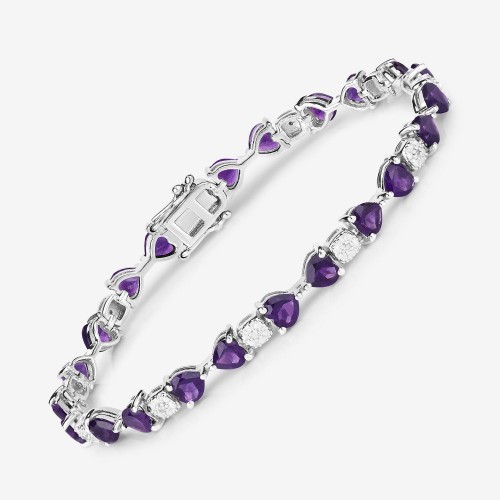 Genuine Amethyst and Diamond Heart Bracelets Sterling Silver