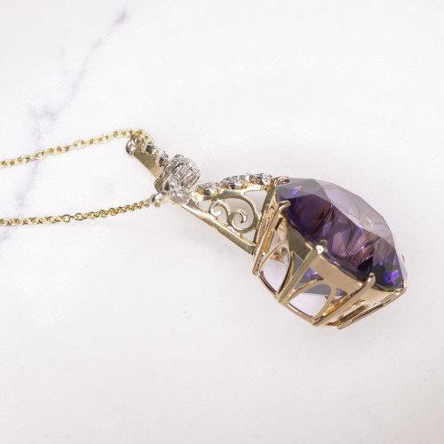 ART NOUVEAU AMETHYST DIAMOND NECKLACE ANTIQUE 18k YELLOW GOLD FLORAL PENDANT