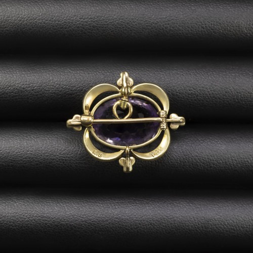 ANTIQUE EDWARDIAN AMETHYST SEED PEARL PIN PENDANT 14k YELLOW GOLD OVAL PURPLE