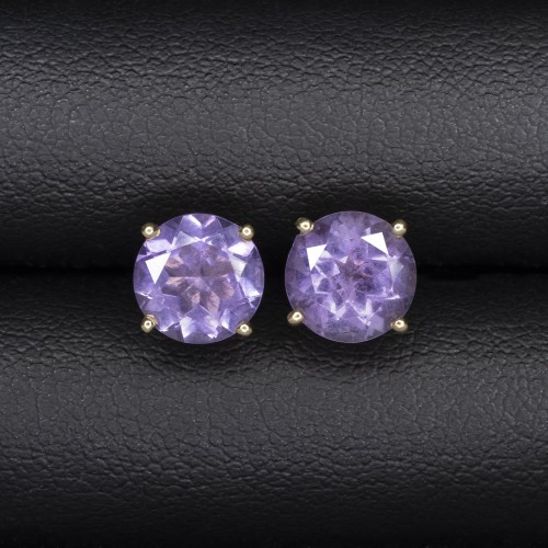 2.40ct AMETHYST 14k YELLOW GOLD STUD EARRINGS ROUND BRILLIANT CUT NATURAL PURPLE