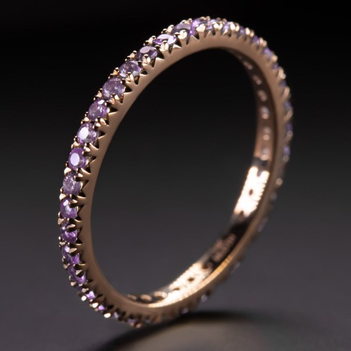 AMETHYST 14K ROSE GOLD ETERNITY RING STACKING WEDDING BAND NATURAL GEMSTONE