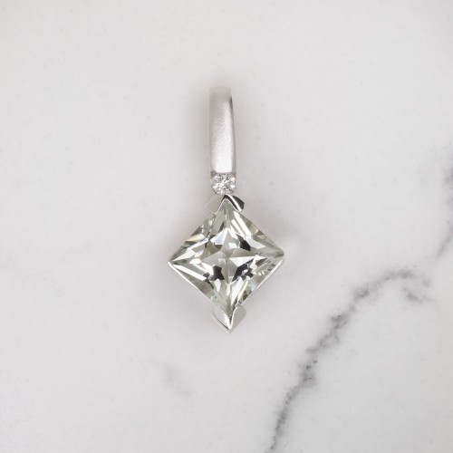 GREEN AMETHYST DIAMOND PENDANT 14k WHITE GOLD PRINCESS CUT PRASIOLITE NECKLACE