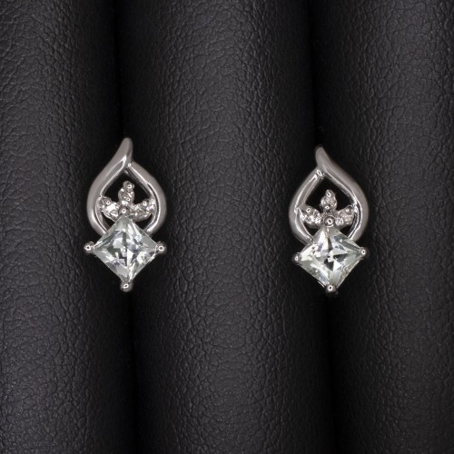 VINTAGE PRASIOLITE DIAMOND STUD EARRINGS 14k WHITE GOLD GREEN AMETHYST NATURAL