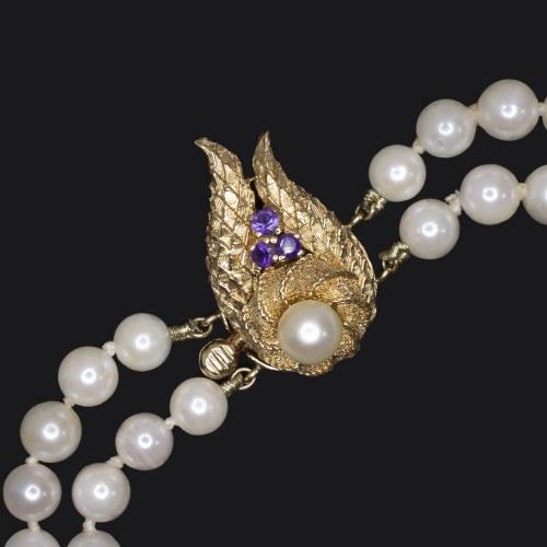 VINTAGE 14k YELLOW GOLD PEARL DIAMOND DOUBLE STRAND NECKLACE AMETHYST ESTATE