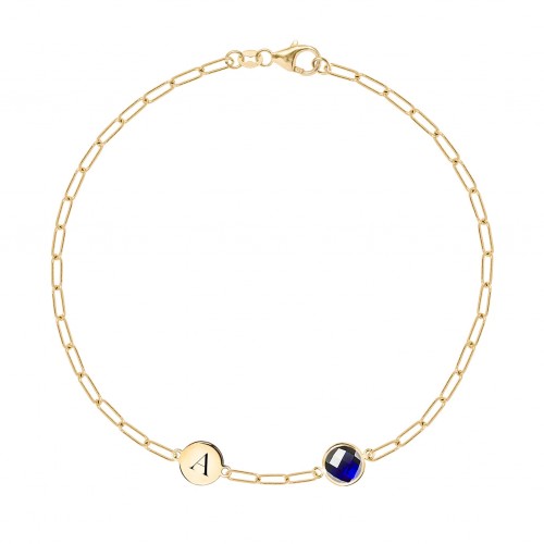 1 Letter & 1 Grand Sapphire Adelaide Mini Bracelet in 14k Gold (September)