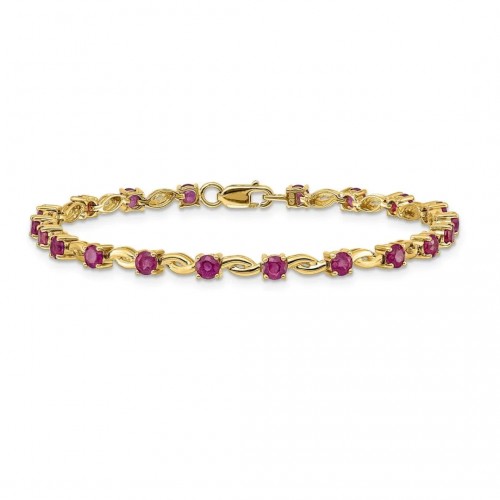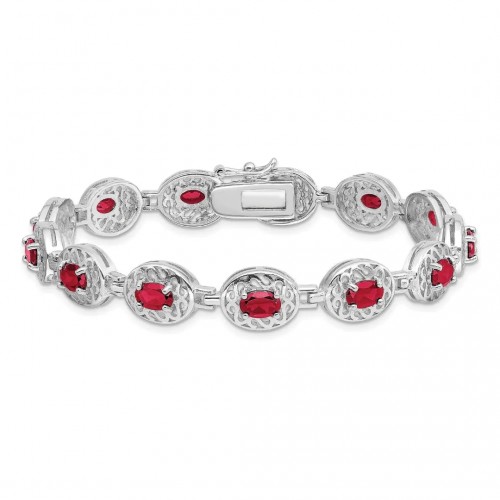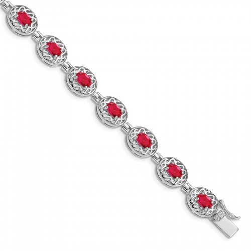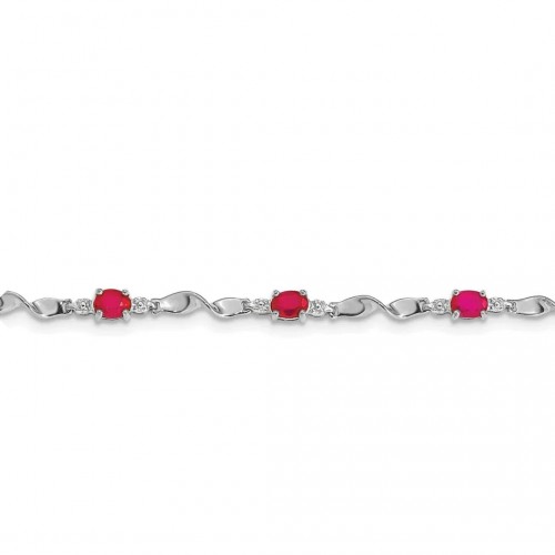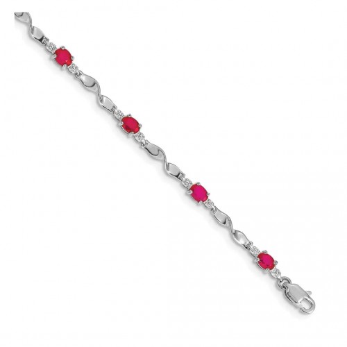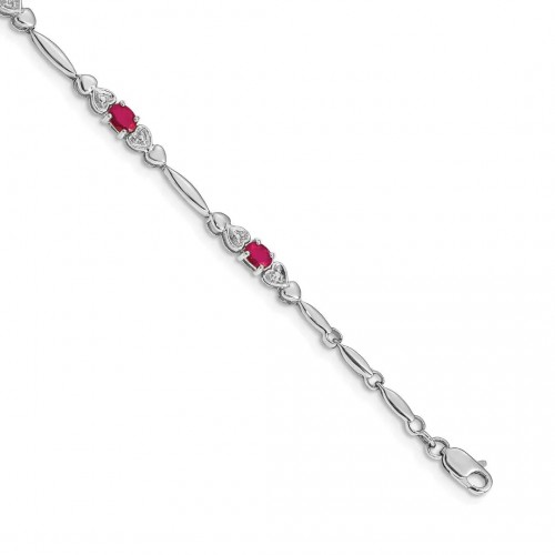 14k White Gold Diamond and Oval Ruby Heart Design 7 inch Bracelet