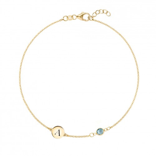 Letter & Nantucket Blue Topaz Pendant in 14k Gold (December)