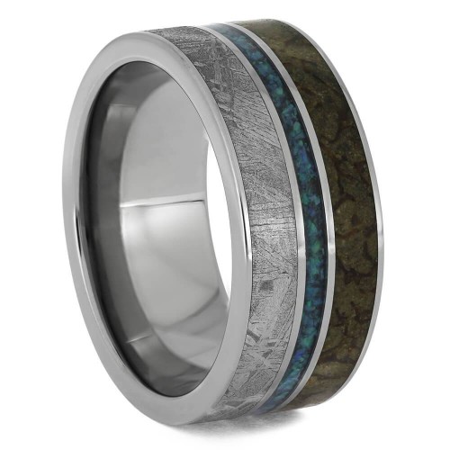 Unisex Opal Wedding Band with Rose Gold & Black & White Mokume 12.75