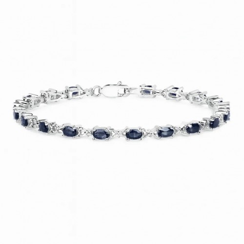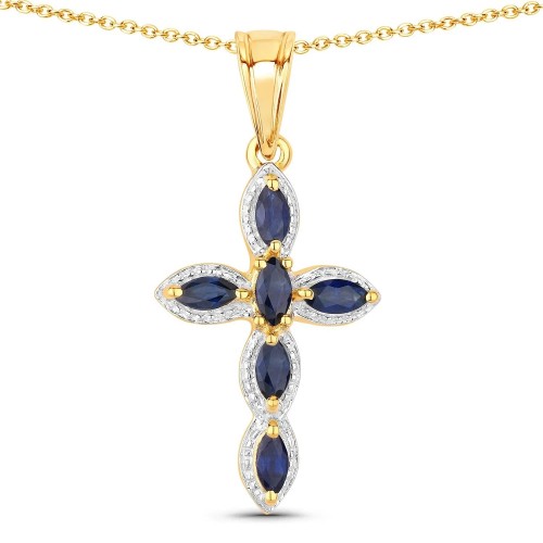 Sterling Silver Natural Blue Sapphire and Diamond Cross Pendant