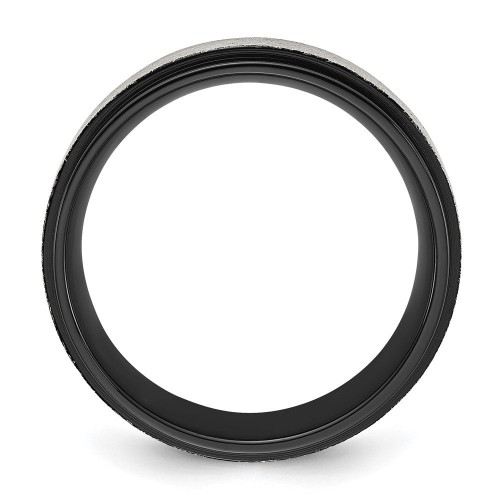Chisel Stainless Steel Polished Black IP-plated with Imitation Meteorite Inlay 8mm Band