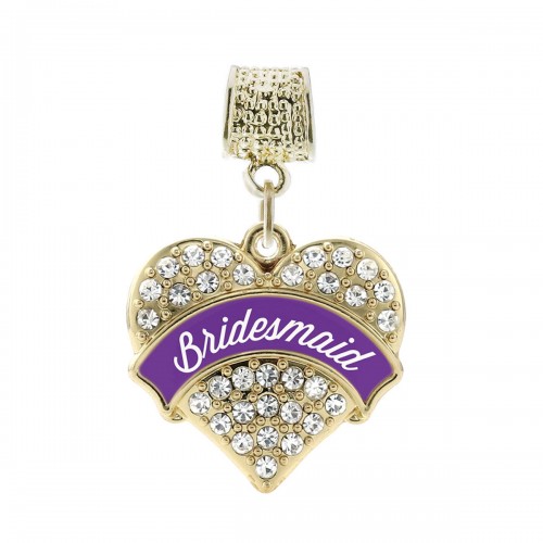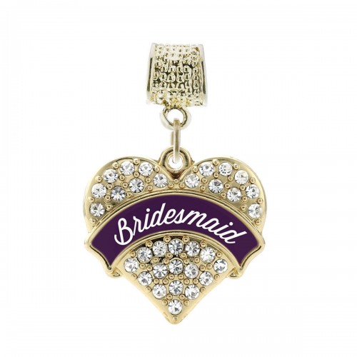 Gold Purple Bridesmaid Pave Heart Memory Charm