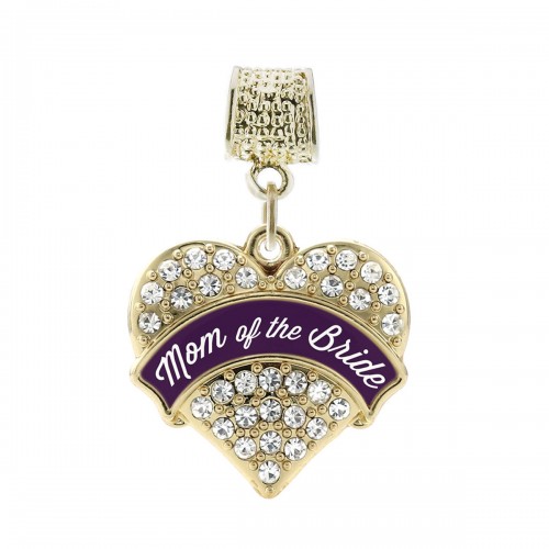 Gold Plum Mom of Bride Pave Heart Memory Charm