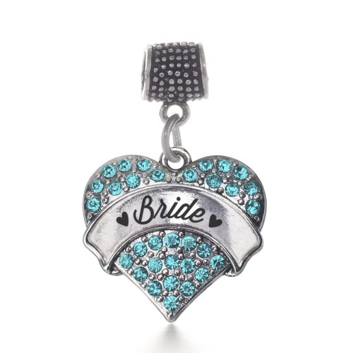 Silver Aqua Bridemaid Aqua Pave Heart Charm Braided Bracelet
