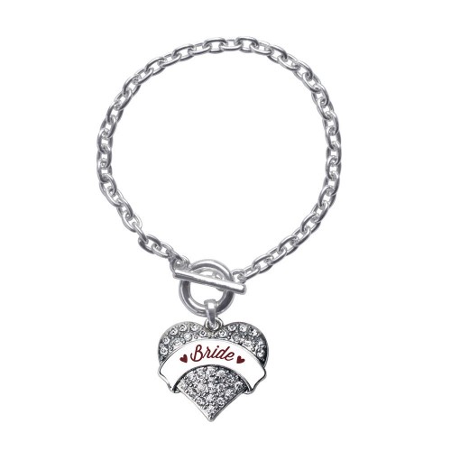 Silver Burgundy Sis of the Bride Pave Heart Charm Toggle Bracelet