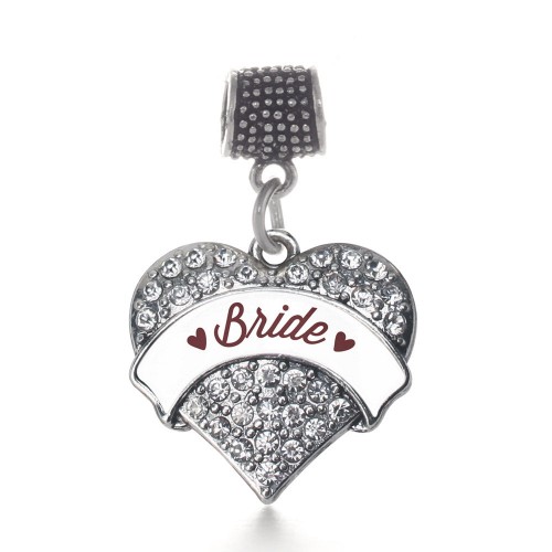 Silver Brown and White Sis of the Bride Pave Heart Memory Charm