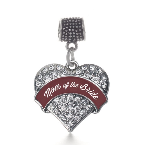 Silver Burgundy Mom of the Bride Pave Heart Charm Toggle Bracelet