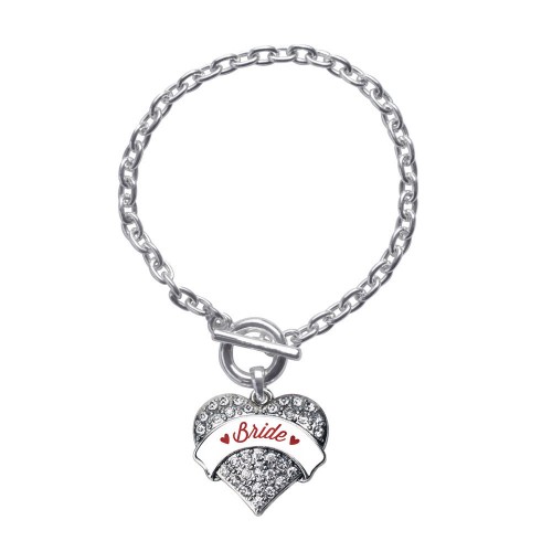 Silver Crimson Red Bride Pave Heart Charm Toggle Bracelet
