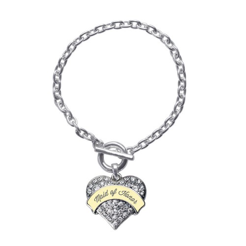Silver Cream Maid of Honor Pave Heart Charm Toggle Bracelet