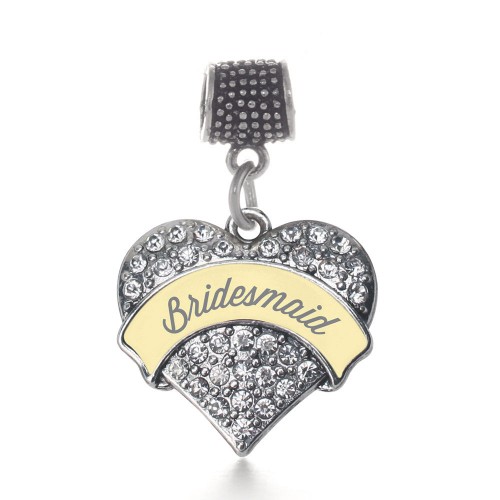 Silver Cream Bridesmaid Pave Heart Memory Charm