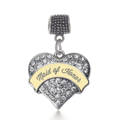 Silver Cream Maid of Honor Pave Heart Memory Charm