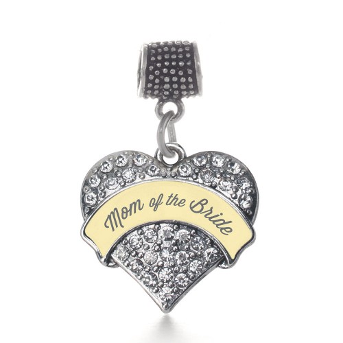 Silver Cream Mom of Bride Pave Heart Memory Charm